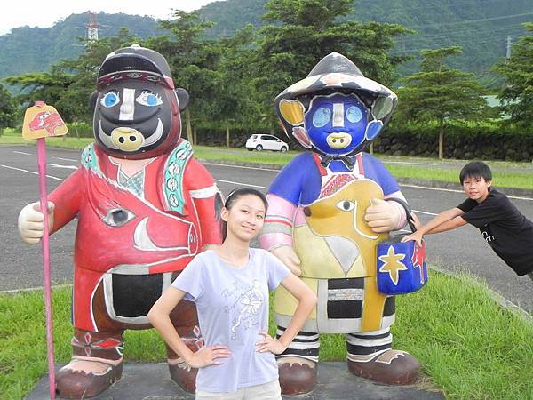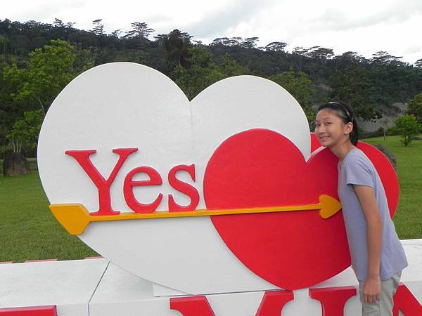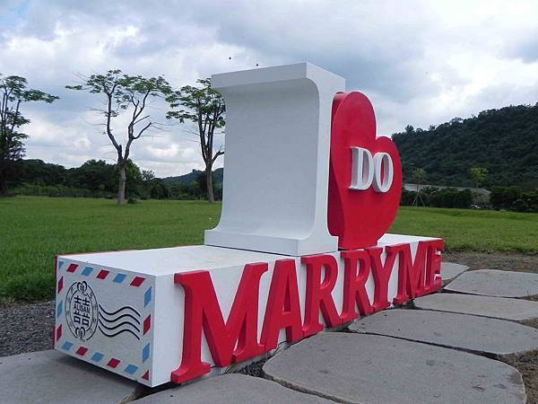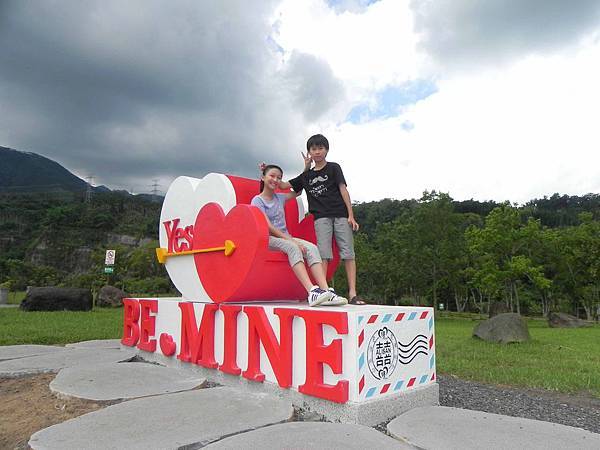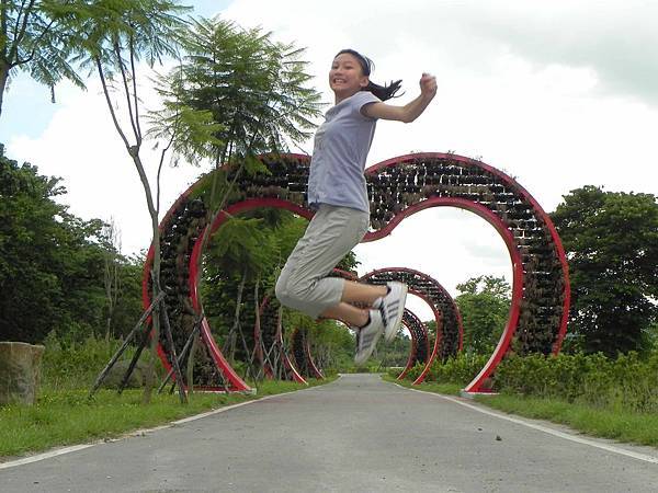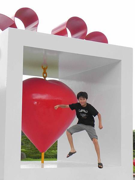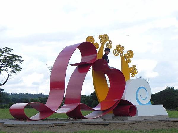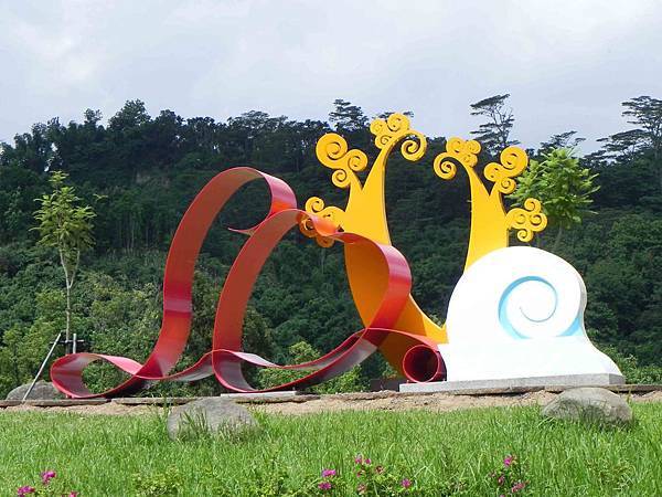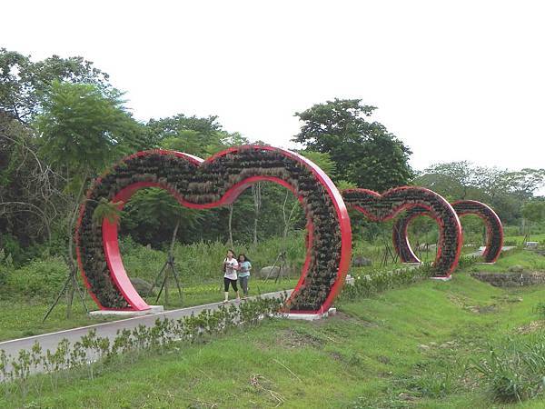 觸口遊客中心對面路旁還有一些大型裝置藝術可以走走看看和拍照喔,這個囍字要距離超過3-40公尺才看的出來,許多人特別是情侶都喜歡在這邊拍照。