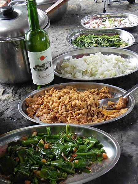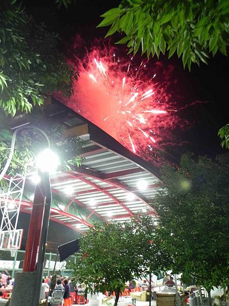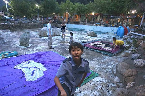 水池邊還有一個當地村莊的運動場,當天晚上這邊可熱鬧了,在辦桌謝票耶,我們都有衝過去吃的想法了,最後還是放棄了,因為我們的更好吃啦。