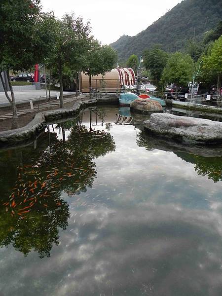 水池中數不盡的錦鯉隨著魚飼料的撒落而隊形大亂,小朋友卻是高興的不得了。