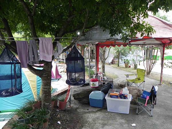 我們因為是前2天臨時訂的,所以分到水池這邊,到了這裡才知道落差很大,是水池裡不是水池邊,還好最後只有我們2頂帳,活動空間多很多。(這是冬季專用的露營地,因為夏季時分會放水供大家戲水喔)