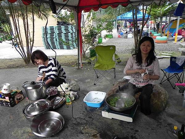 2位主廚開心的說,第一次做菜可以有椅子坐耶。