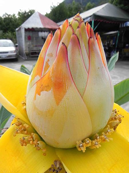 美麗特殊的花,老闆稱它為<地湧金蓮>。