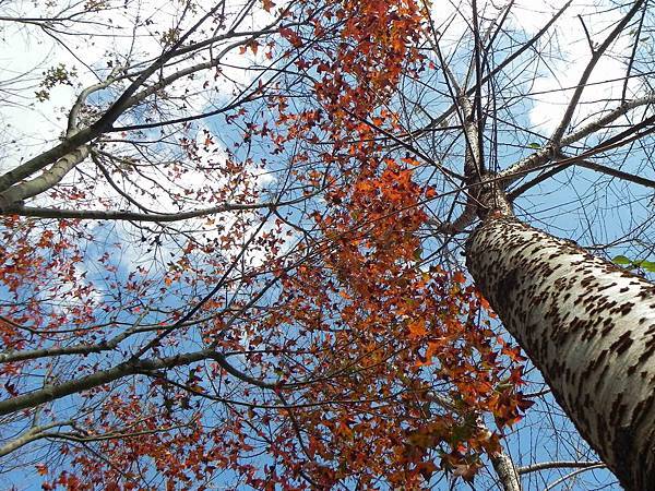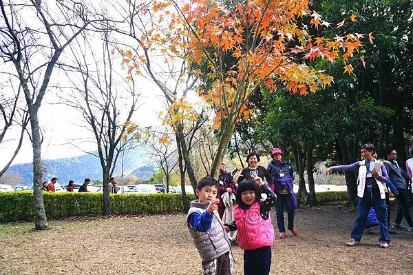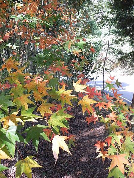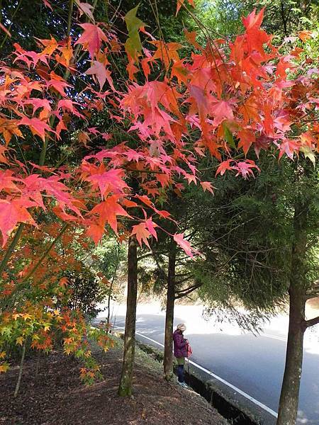 在草皮區有幾棵楓樹很紅喔,這邊不下車是拍不到的。