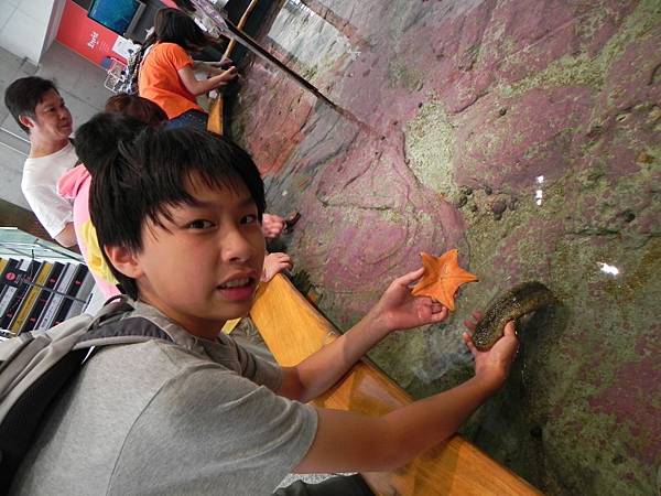 離開前還有一個體驗區,那就是大家可以觸碰一些海洋生物,例如:海星,海參,龍蝦...之類的。