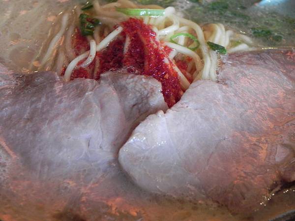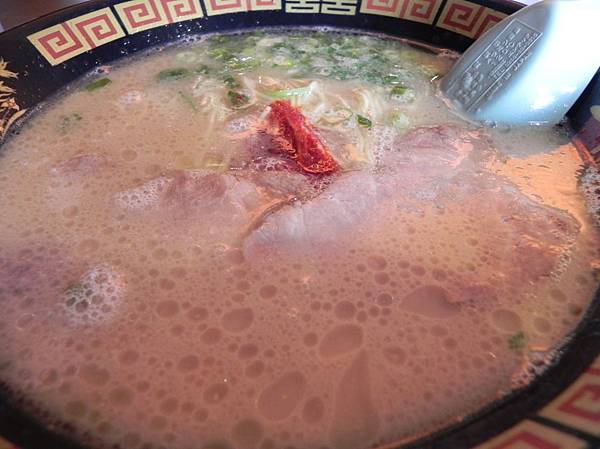 拉麵的碗底有字喔,字的意思是每一滴湯都很好喝很喜歡,我們還為了看清楚這字,把湯都喝光光了。