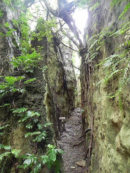 步道就穿梭在這些珊瑚礁岩所構成的小山谷之間,可惜盡頭沒有木棧道,都是泥濘地無法前進到大榕樹。