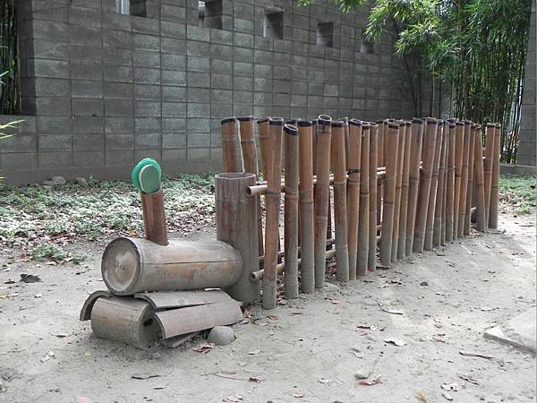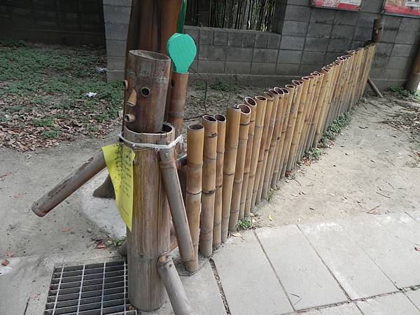 一旁的竹籬笆樂器,吸引了大小朋友的注意,拿起旁邊準備的拍子,可以發出不同的旋律喔。