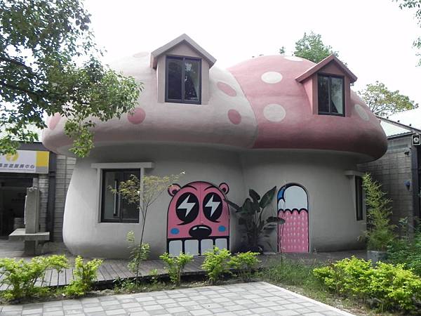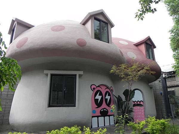 這棟童話般的蘑菇屋,打造的相當可愛,絕對會成為亮眼的新地標,屋頂頂著淡粉的色彩,幻想 ing ~~~如果是藍色的不就成了藍色小精靈的家嗎。