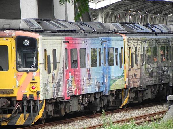 沿著緩慢上升的步道有機會可以看到偶而過往的彩繪列車。