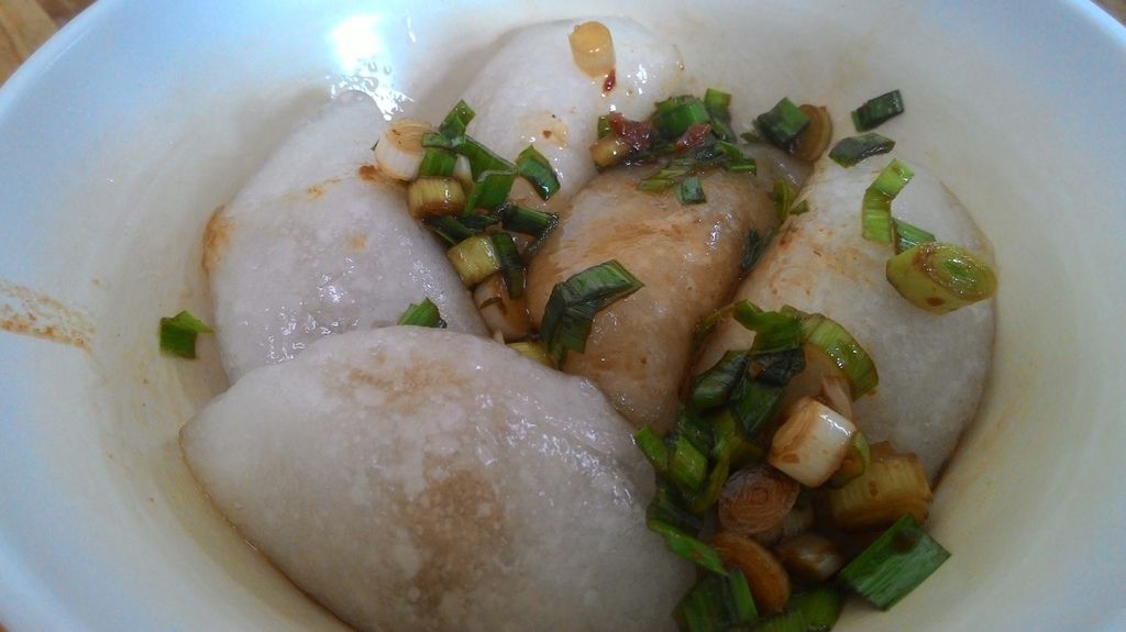 我們主要是吃水晶餃,這邊的水晶餃造型是屬於半月型的,QQ的外皮沒有軟爛的感覺,咬起來倒是軟Q滑口,內餡是黑豬肉,油蔥及胡椒的組合,吃得到豬肉的鮮甜度,鹹度也是調得剛剛好,好吃,所以離開時順便外帶了一些回家回味一下。呵呵 ~~~當然也有湯的,可是我們愛吃乾的這一味,湯的有機會再試試。