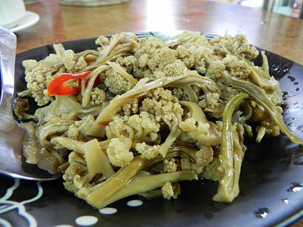 招牌菜之一 ~ 花椰菜干,第一次吃感覺蠻特殊的,古早味的菜色,早期居民因為產量過多或是其他因素,將花椰菜刨成一絲一絲,再拿到太陽下曬成干,這樣就可以放很久了,等有需求時再來炒。