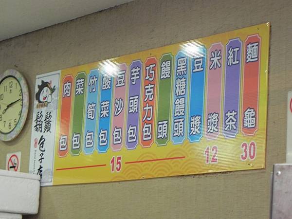 鬍鬚包子饅頭店的價目表,不管是肉包、菜包還是饅頭均一價15元,比較特別的是還有賣麵龜耶。