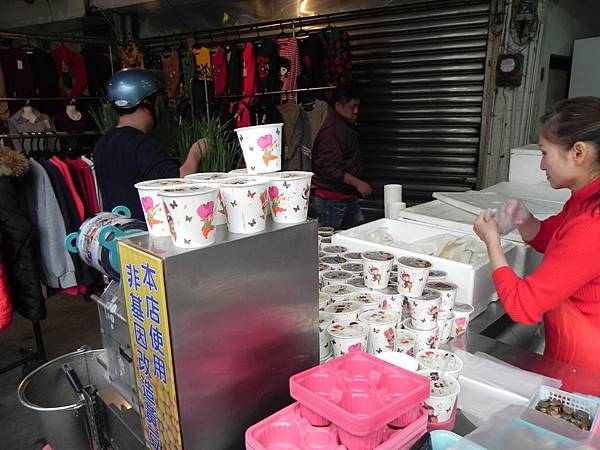 看看這些非基改的豆漿,都快滿到桌子外面了,生意好不好看這就知道了。