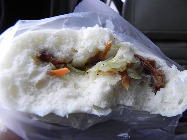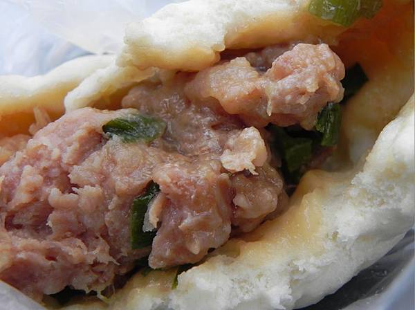 肉包的肉餡感覺是用比較有口感的粗絞肉,吃起來比較有嚼勁,加上帶點醬油的甜鹹滋味,還有三星蔥的好味道,這個肯定是好吃。