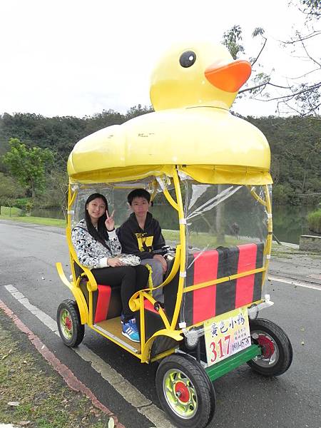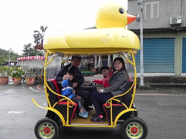 今天來到宜蘭冬山的梅花湖,走在湖前的商店街,因天氣不佳,所以遊客不多,也讓我們有機會租了可愛的電動車來避雨+遊湖。