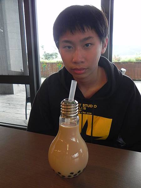 想要一睹傳說中的燈泡奶茶可是要等一下子,還好等待時間可以和這大大的燈泡奶茶合拍,如果是實物就更棒了。