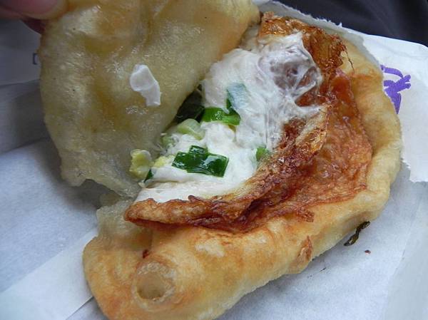 裡面包覆著整顆蛋,可以看到加了不少蔥。
