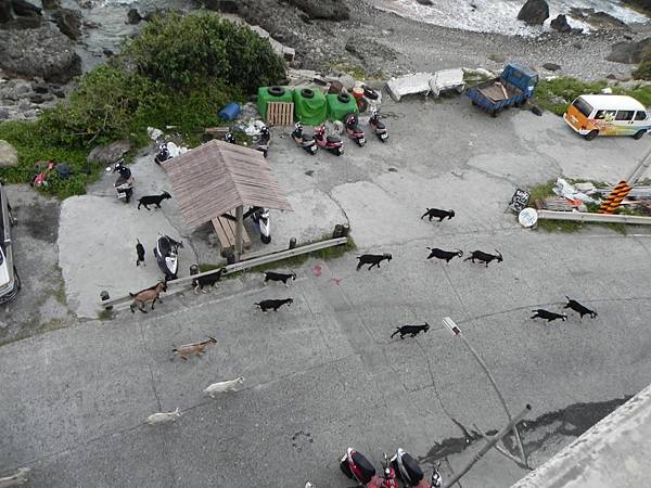 民宿底下成群的羊兒過馬路了,難道是早上的草比較好吃嗎 ^_^。
