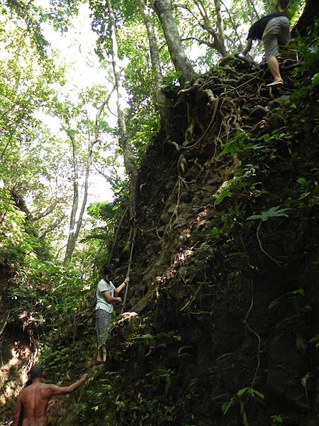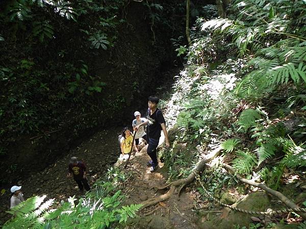下坡後記得要向右邊走,向左走會離目的地有些遠,沒嘗試過是否可行。溪谷中途有一個捷徑,這邊有準備了繩索可以方便大家體驗一下直上直下宛如攀岩的驚險,不考慮這邊的話走到底(不遠)可以較容易上去。