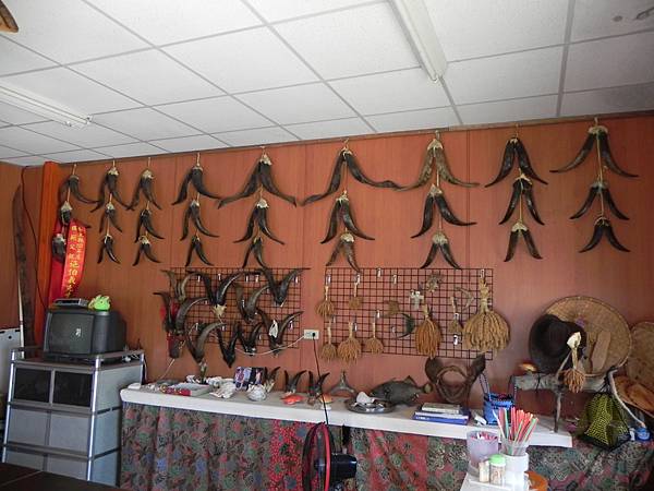 進到屋內牆上掛滿了羊角。跟老闆聊了一會兒才知道,這裡的雞鴨豬羊..動物平常都是幸福的,因為只有節慶時才有機會被宰殺。