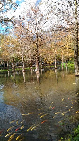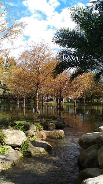 入口處旁有潺潺流水的小溪,慢慢地將水注入落羽松的池子裡,只是大家一進入這裡就都擠在這邊拍照,建議大家先環湖一圈,每個角度都很美。