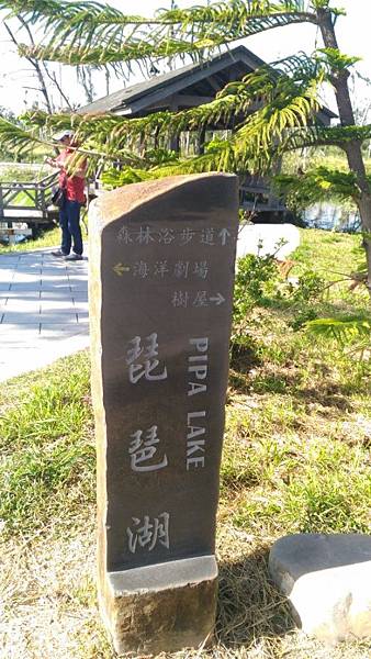 黑森林公園中除了活水湖外還有兩座湖泊分別是『琵琶湖』和『鷺鷥湖』,進來看到的第一個有標示的湖泊是琵琶湖,其湖面形狀類似琵琶(我們不夠高看不出來)、另一個是常有鷺鷥來此棲息的鷺鷥湖,2個都是珍貴的河口海濱溼地,仔細找找也有許多有台灣原生的淡水魚類喔。