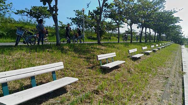 湖的另一邊有著一整排的座椅,民眾累了可以休息,這一邊也有著活動,不過天氣太熱,民眾意願度=0。