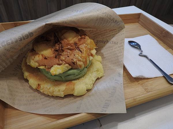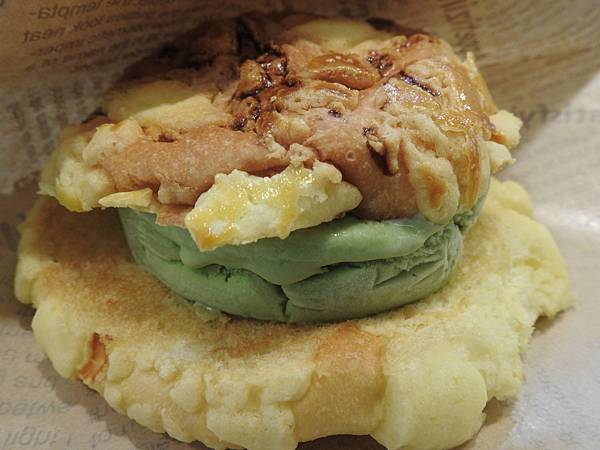 3種口味都來一份吃吃,熱熱的波蘿麵包香氣撲鼻而來,我餓了,波蘿麵包吃起來外皮酥酥的,有蓬鬆的感覺,自製的抹茶味道不澀很香醇,搭配起來還不錯。