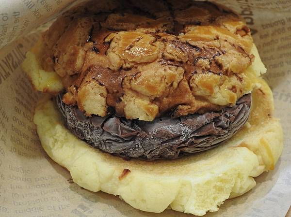 巧克力的香甜與波蘿麵包還算契合,吃起來不會太甜太膩,不錯。
