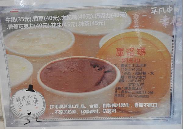 店家熱門的商品之一是自製的手工冰淇淋,這是採用澳洲進口乳品加上台糖及自製醬料製作,以天然為主,冰淇淋的口味有香草,巧克力,香蕉巧克力,牛奶和太妃糖等。