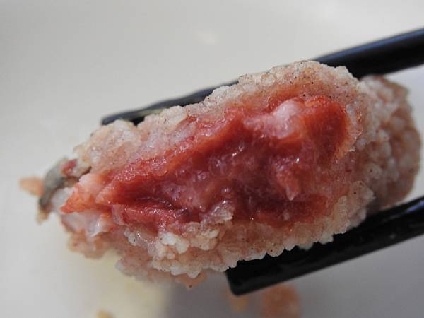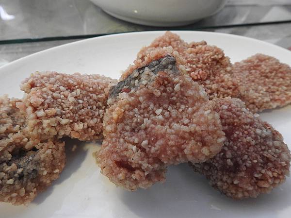 紅糟鰻魚,這魚炸的酥酥香香的, 外觀紅糟還不明顯,一口咬下後可以看到紅糟醃製的鰻魚肉,肉質細嫩好吃。