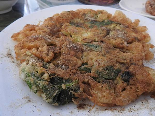 除了餅之外一起上菜的還有這蛋菜煎,一臉問號的我們還以為是送錯桌了,問了老闆才知道這是要夾在繼光餅一起吃的。