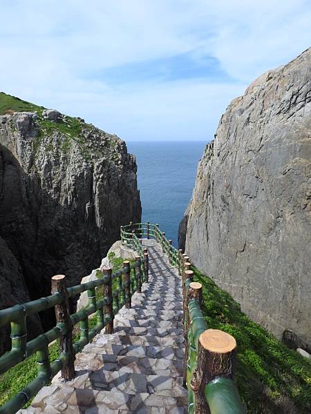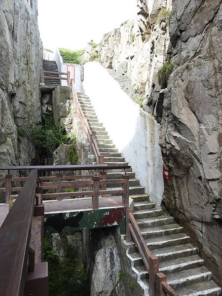 東引的一線天不是在山中,而是在海邊,沿著階梯下去要左轉,右邊是軍事基地喔,想進也進不了。