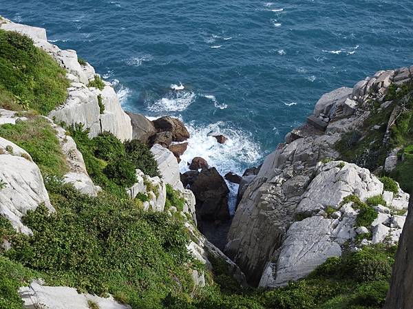 拉近給大家看,聽說在兩座山崖之中,築有坑道,只靠一座水泥橋相連,橋面距海面數十公尺,找了好久~我想這應該就是傳說中的水泥橋了。
