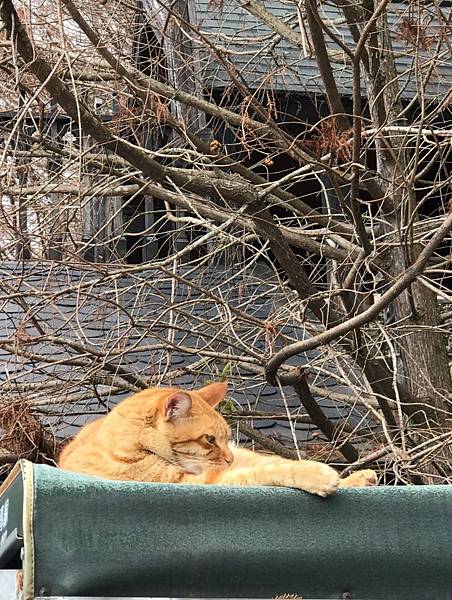 停車場一台貨車上發現一貓咪,慵懶自得的曬著太陽,享受生活的感覺真好,如同我們一般。