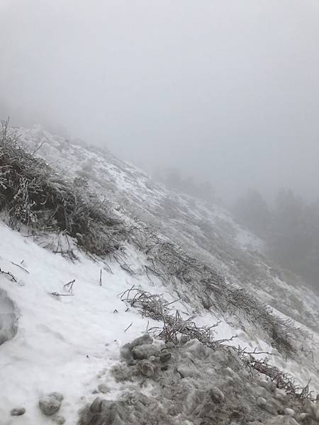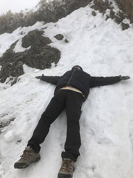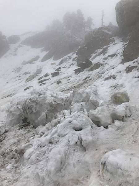 影片不會放,直接截了幾張圖給大家看看武嶺往小風口方向的雪況,遠方斜坡有一個小黑點,靠近一看原來這是有人在溜滑梯。