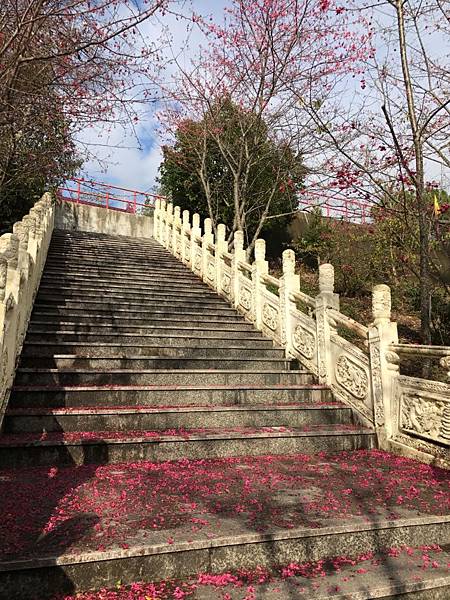 雖然時間點有些不對了,但走在還有飄滿櫻花的階梯上,還是可以幻想一下彷彿在日本神社的美感。