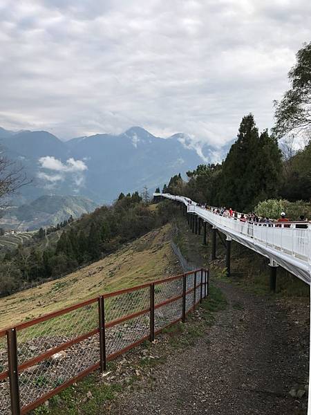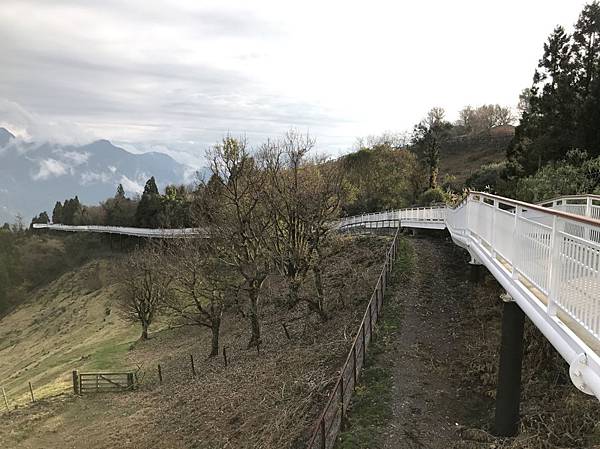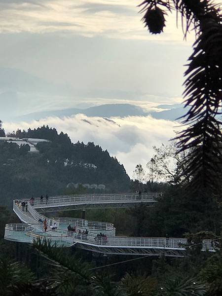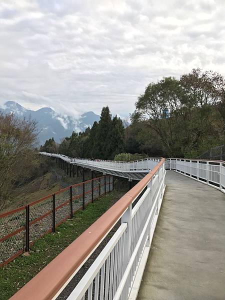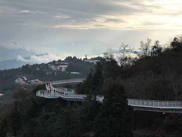 清境高空觀景步道遠看像白色巨龍盤旋清境山頂,可以邊走邊欣賞周遭與腳下的綠意盎然。