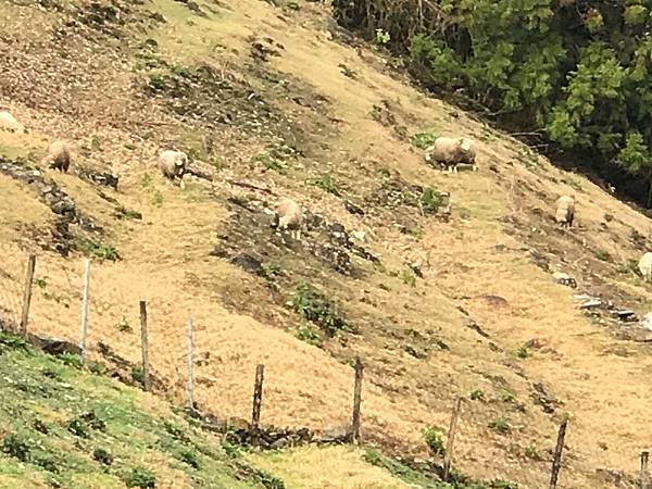 遠方山坡的綿羊。
