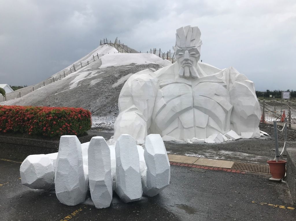 這一站是位在台南市七股區和將軍區的七股鹽山,本來以為是一座尖尖的山,沒想到多了一個戰士的創作,哪一隻手嚷我想到越南新建的一座大橋,在峴港知名度假勝地巴拿山上,有一座橋的造型很特別,這座牆名為黃金墻,遠遠看起來就像是一雙巨手托住橋樑,又被稱為「巨手托橋」。