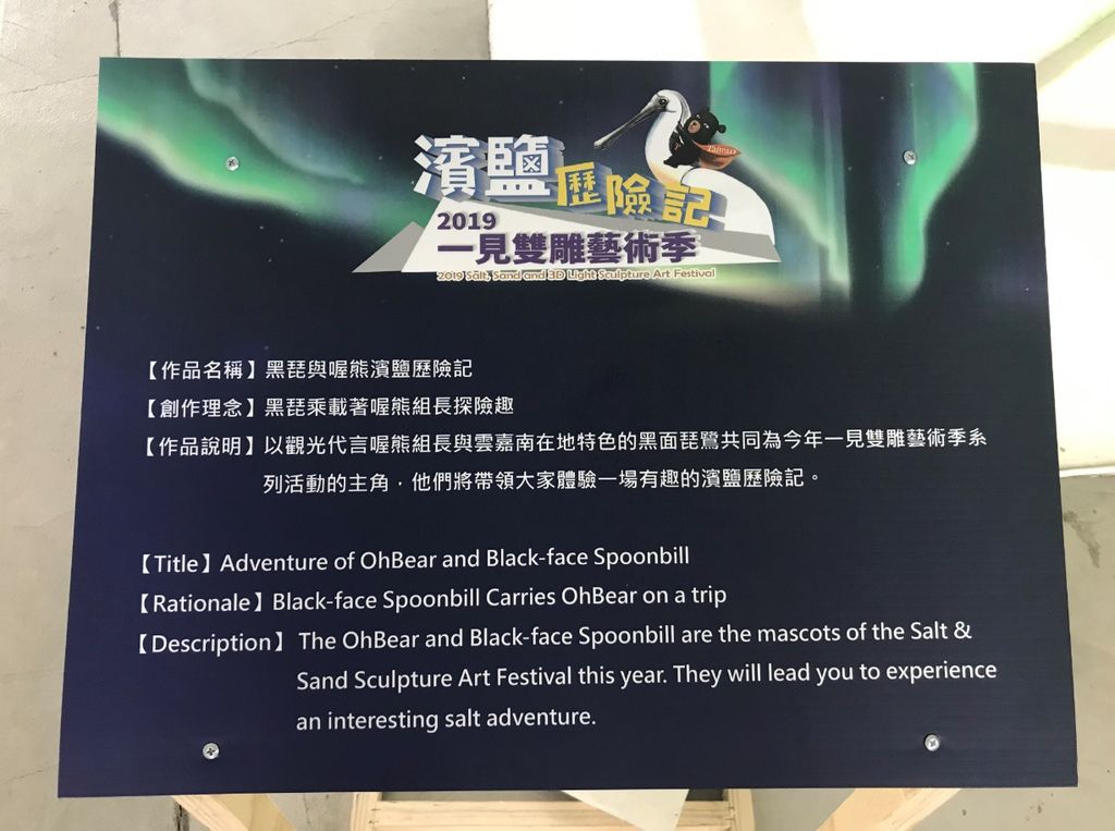 『黑琵與喔熊濱嚴歷險記』以觀光代言喔熊組長與雲嘉南在地特色的黑面琵鷺共同為今年一見雙雕藝術季系列活動的主角,他們將帶領大家體驗一場有趣的濱鹽歷險記。