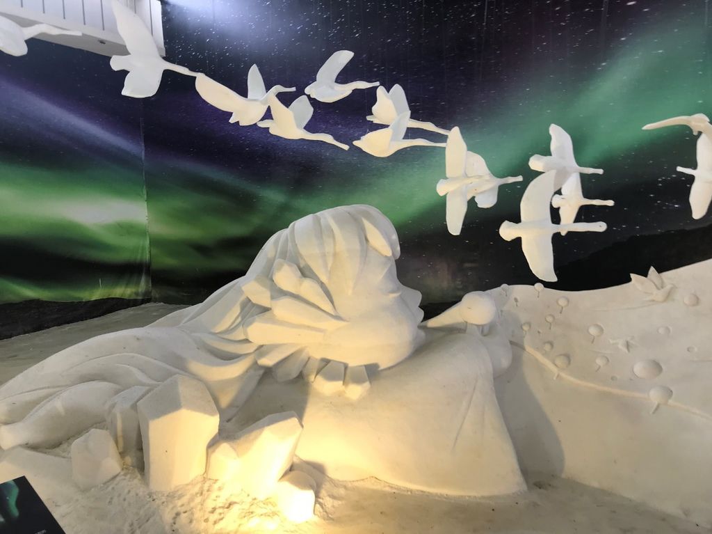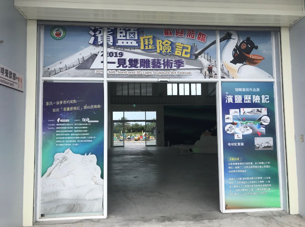 而『2019一見雙雕藝術季』活動會場有三個,雙主場是七股鹽山、臺灣鹽博物館,副展場是馬沙溝社區,雙主場結合靜態鹽雕和動態影音光雕秀,以科幻歷險故事濱鹽歷險記為題材,由觀光局代言大使喔熊組長與黑面琵鷺帶領大家,展開一趟驚奇有趣的探險歷程,副展場則設計一齣戲說英雄-尋寶趣的沙雕展,首次將布袋戲棚用沙雕手法立體創作,彩繪地景結合其他沙雕作品,增添互動及趣味性。