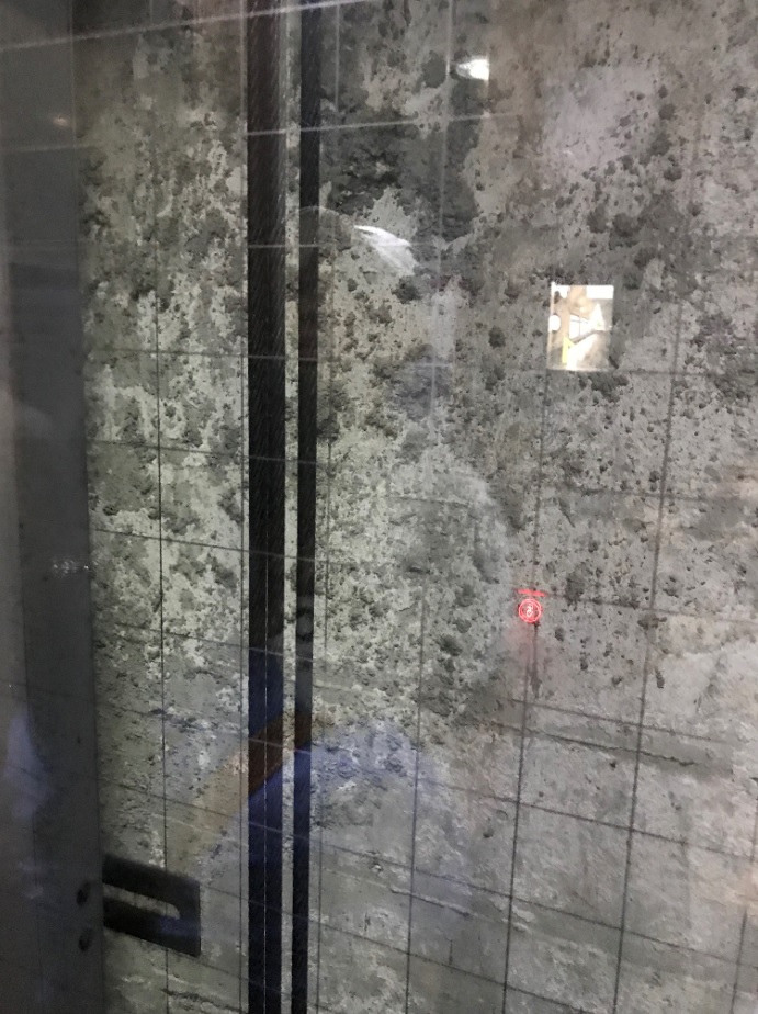 電梯是透明的,只是看到的都是水泥牆面。
