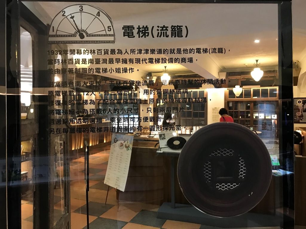 當初林百貨樓高五層可是府城最高的標的,這裡也設置了南台灣第一座”流籠(電梯)”,據說當時來搭電梯代表著時代流行,最遠還有人從屏東特地要來朝聖呢,不過電梯空間不大,可以乘坐的人數約4~5個人吧。
