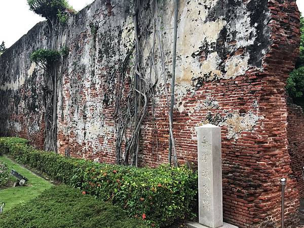 台南在台灣算是開發最早的城市之,所以有許多的文物古蹟留到現在,今天有一站目的地是熱蘭遮城博物館,沿著紅磚古牆慢慢地前進,部分基座已經布滿了青苔,增添一些古樸。