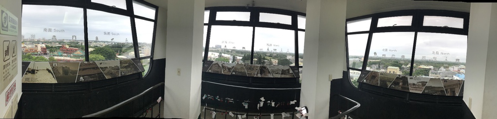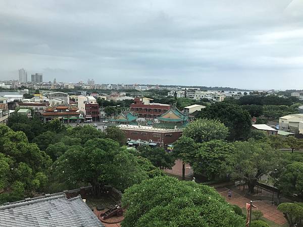 登上瞭望台塔頂(部分全景),除可俯瞰熱蘭遮城的半圓堡遺址,還可遠眺安平街景。