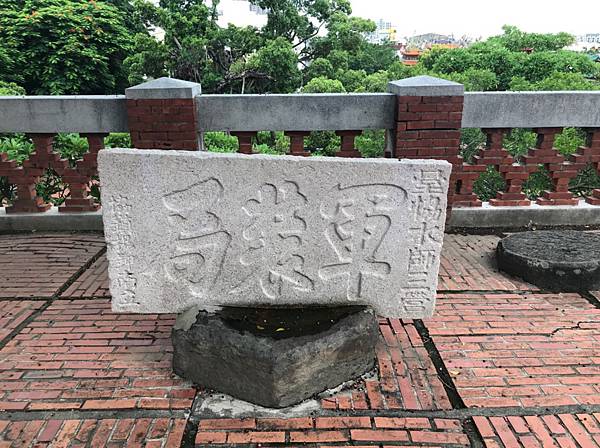 靜靜佇立在文物陳列館旁的石碑,上書「軍裝局」,此碑記錄著台灣經歷的一段歷史。此石碑係1873年水師協鎮楊鉀南整建軍裝局所立,1930年日人舉辦台灣文化300年,將此石碑移至現址,供作紀念。