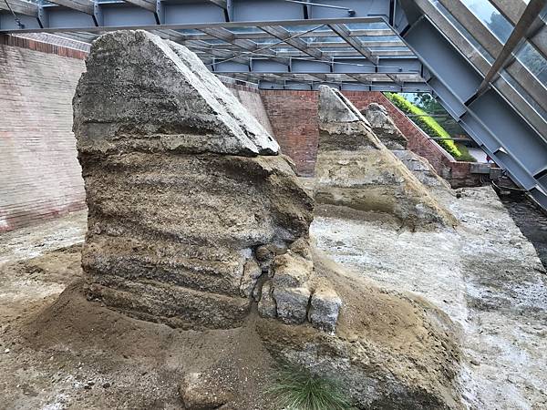 部分扶壁上還可以見到溝槽,推測為用來搬送砲彈時使用。透過扶壁的傾斜角度,使砲彈在運送時能更加省力。