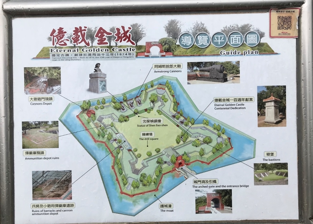 接著分享一下億載金城,億載金城位在台南安平附近,是台灣島第一座西式砲台,也是第一座配備『阿姆斯壯大砲』的砲台,可說是台灣砲台史上劃時代的里程碑。