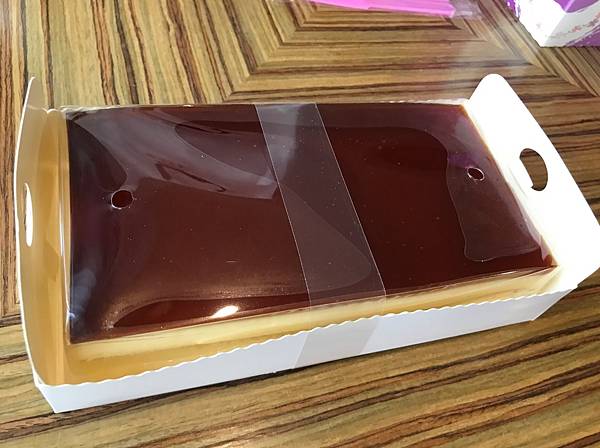 殼一拿開咖啡凍表面還是亮亮的,還以為又有一片保護層,結果真的是咖啡本身的鏡面,這是在飯店拍的,有點差。